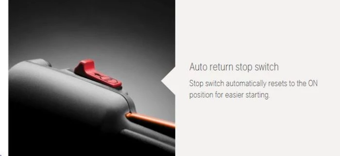 - Auto Return Stop Swithc – Stop switch automatically resets to the ON position for easier starting