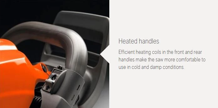 Efficient heating coils in the front and rear handles make the saw more comfortable to use in cold and damp conditions.