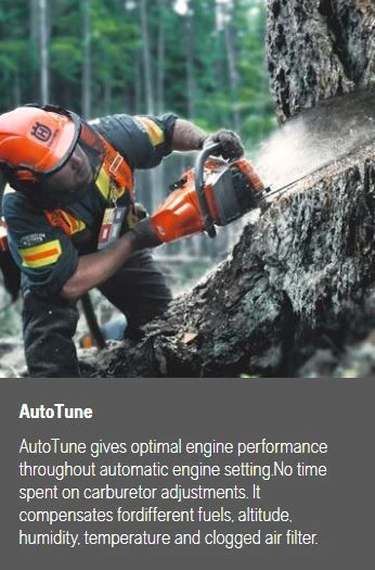 AutoTune gives optimal engine performance throughout automatic engine setting. No time spent on carburetor adjustments. It compensates for different fuels, altitude, humidity, temperature and clogged air filter.